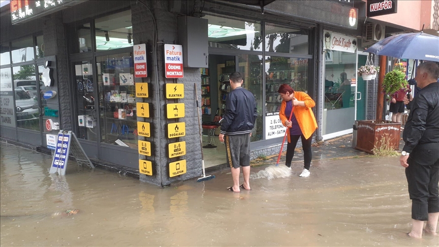 Düzce’nin Akçakoca ilçesinde sağanağın ardından sokaklar sular altında kaldı, bazı iş yerleri zarar gördü.